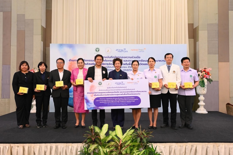 5 มิถุนายน 2568 ณ โรงแรมพูลแมน ขอนแก่น – กระทรวงการอุดมศึกษา วิทยาศาสตร์ วิจัยและนวัตกรรม (อว.) สำนักงานพัฒนาวิทยาศาสตร์และเทคโนโลยีแห่งชาติ (สวทช.) โดย ศูนย์นาโนเทคโนโลยีแห่งชาติ (นาโนเทค) ร่วมกับสำนักงานสาธารณสุขจังหวัดขอนแก่น และองค์การบริหารส่วนจังหวัดขอนแก่น ลงนามความร่วมมือด้าน “การนำนวัตกรรมชุดตรวจคัดกรองโรคไต และภาวะแทรกซ้อนจากโรคเบาหวาน เพื่อส่งเสริมการบริหารจัดการสุขภาพในพื้นที่จังหวัดขอนแก่น” โดยมีเป้าหมายเพื่อจัดกิจกรรมอบรมการใช้ชุดตรวจคัดกรองโรคไตให้แก่บุคลากรทางการแพทย์และเจ้าหน้าที่โรงพยาบาลส่งเสริมสุขภาพตำบล ครอบคลุมทั้ง 248 แห่งในจังหวัดขอนแก่น เพื่อขับเคลื่อนการใช้ชุดตรวจคัดกรองอย่างครอบคลุมทั่วทั้งจังหวัด เป็นการนำร่อง ‘ขอนแก่นโมเดล’ ซึ่งตั้งเป้าขยายผลสู่ระดับประเทศภายในปี 2571 เพื่อยกระดับสุขภาวะของประชาชนไทยด้วยนวัตกรรมทางการแพทย์ที่ทันสมัย เข้าถึงง่าย และตอบโจทย์ความต้องการในพื้นที่