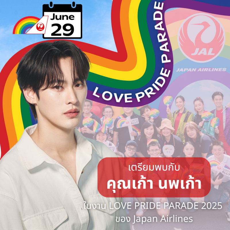 เตรียมร่วมเฉลิมฉลองส่งท้าย Pride Month กับขบวนไพรด์พาเหรดสุดอลังการ ภายใต้ธีม “Journey on the Rainbow Sky” ในงาน LOVE PRIDE PARADE BANGKOK 2025 โดยสายการบินเจแปน แอร์ไลน์ (JAL) ร่วมกับ เอ็ม ดิสทริค และเดอะมอลล์ กรุ๊ป พร้อมเนรมิตถนนพระราม 1 ให้กลายเป็นถนนสายรุ้งแห่งความเท่าเทียมที่ยิ่งใหญ่ที่สุดในประเทศไทยและภูมิภาคเอเชียตะวันออกเฉียงใต้ พบกับนักแสดงหนุ่มสุดฮอต “เก้า – นพเก้า เดชาพัฒนคุณ” ที่จะมาร่วมสร้างสีสันบนรถขบวนพิเศษของ JAL โดยสายการบินต้องการแสดงจุดยืนอย่างชัดเจนในการสนับสนุนความหลากหลาย ความเท่าเทียม และการมีส่วนร่วม พร้อมมุ่งมั่นสร้างสภาพแวดล้อมที่เปิดกว้างและเป็นมิตร ทั้งภายในและภายนอกองค์กร ขบวนพาเหรดจะเริ่มต้นจาก สนามกีฬาแห่งชาติ ไปจนถึง เอ็มสเฟียร์ รวมระยะทางกว่า 5 กิโลเมตร ในวันอาทิตย์ที่ 29 มิถุนายน 2568 เริ่มขบวนเวลา 16.00 น. เป็นต้นไป