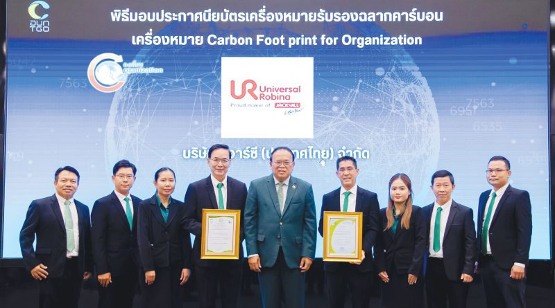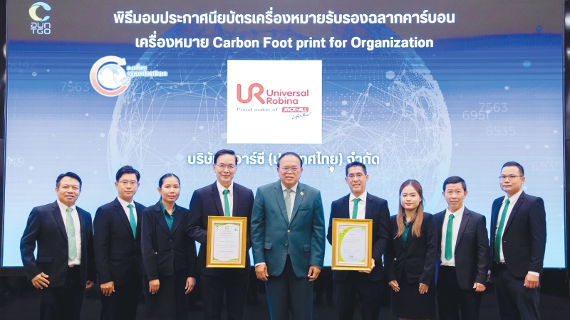 ยูอาร์ซี รับประกาศนียบัตรเครื่องหมายรับรอง “คาร์บอนฟุตพริ้นท์ขององค์กร” สร้างการเติบโตนำพาองค์กรเข้าสู่สังคมคาร์บอนต่ำ ลดโลกร้อนอย่างยั่งยืน