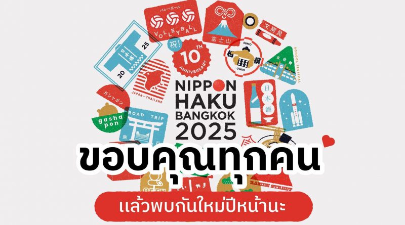 ปิดฉากลงอย่างสวยงาม กับงาน “นิปปอนฮาคุ แบงคอก 2025” (NIPPON HAKU BANGKOK 2025) มหกรรมที่รวมทุกเรื่องของญี่ปุ่นครบสุดในไทย พร้อมฉลองครบรอบ 10 ปี กับคอนเซ็ปต์ “ยิ่งรู้จัก ยิ่งรักญี่ปุ่น” จัดเต็มความสนุก 3 วันเต็ม กับฝูงชนคนรักญี่ปุ่นเข้าร่วมงานกว่า 1.5 แสนคน