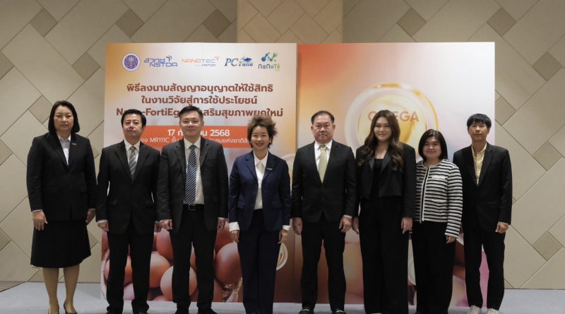 วันที่ 17 กันยายน 2568 ณ ศูนย์การประชุมแห่งชาติสิริกิติ์ – กระทรวงการอุดมศึกษา วิทยาศาสตร์ วิจัยและนวัตกรรม สำนักงานพัฒนาวิทยาศาสตร์และเทคโนโลยีแห่งชาติ (สวทช.) โดย ศูนย์นาโนเทคโนโลยีแห่งชาติ (นาโนเทค) ลงนามความร่วมมือกับนาโนเต้ ในเครือพีซี ทูน่า ต่อยอดของเหลือในกระบวนการผลิตทูน่ากระป๋อง/ปลากระป๋องสู่สารเสริมอาหารไก่ไข่ สู่การผลิต “ไข่เสริม (Fortified eggs) ที่มีโอเมก้า 3 สูง ปูทางรับเทรนด์อาหารอนาคต เตรียมขยายผลภาคสนามใน 3 พื้นที่ ได้แก่ สมุทรปราการ สมุทรสาคร และฉะเชิงเทรา หวังยกระดับคุณภาพทั้งผู้บริโภค เกษตรกร และอุตสาหกรรมพร้อมกัน