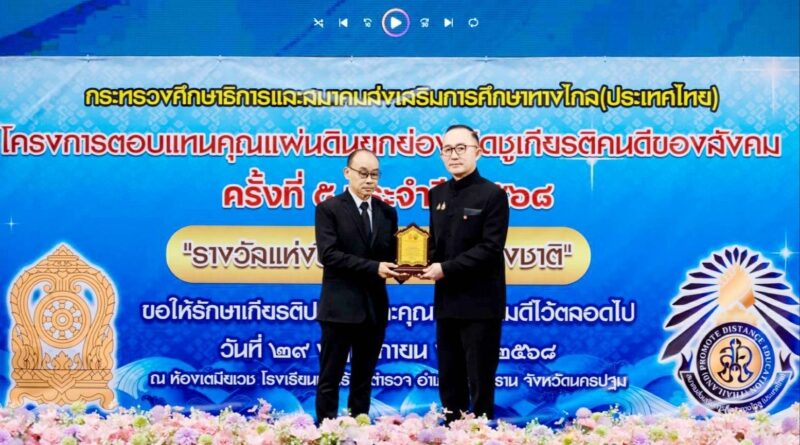 The Ministry of Education, in collaboration with the Distance Learning Promotion Association of Thailand, hosted the 5th National Honorary Figure Award Ceremony 2025 on 29 November, at the Temiyavet Hall, Command Building, Royal Police Cadet Academy, Sam Phran District, Nakhon Pathom Province.