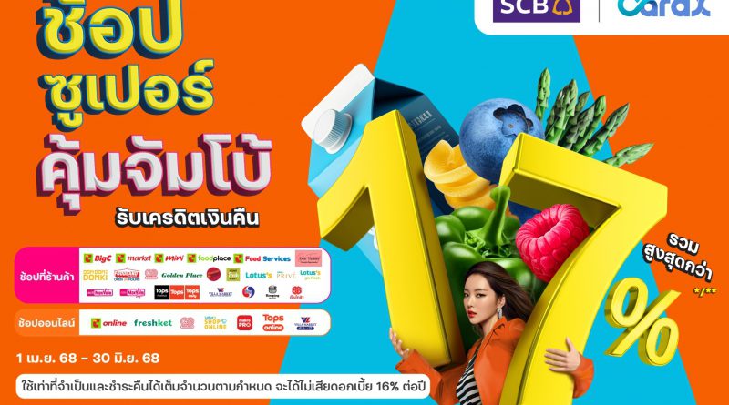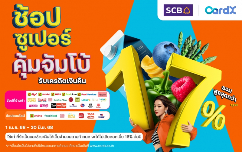 แคมเปญช้อปซูเปอร์นี้เปิดโอกาสให้ช้อปเปอร์ผู้ถือบัตรเครดิตคาร์ดเอกซ์ และบัตรเครดิตไทยพาณิชย์ ได้ช้อปสนุก ช้อปคุ้มค่า พร้อมรับเครดิตเงินคืนรวมสูงสุดถึง 17%* ด้วยไฮไลต์ความคุ้ม 2 ต่อ ที่สายช้อปห้ามพลาด!