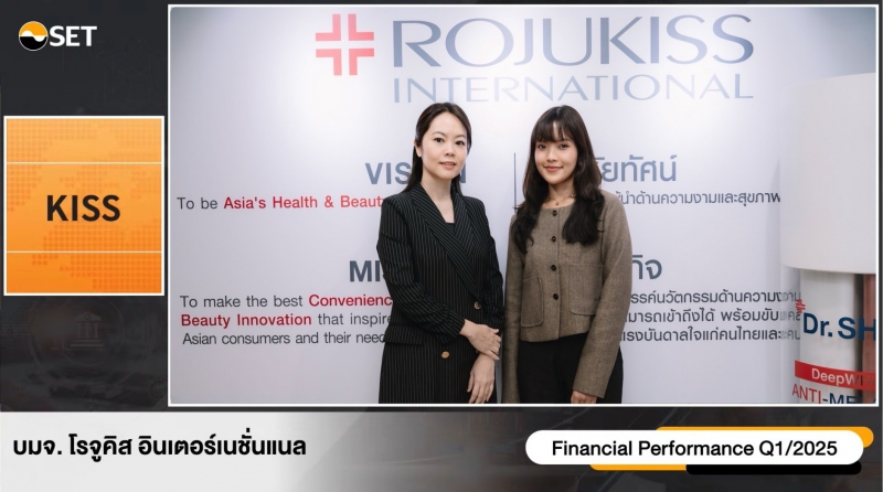 นางสาวนันทิกา แซ่เจียง (ซ้าย) ประธานเจ้าหน้าที่สายงานบัญชีและการเงิน พร้อมด้วย นางสาวปรียาภรณ์ อ้นบุตร (ขวา) นักลงทุนสัมพันธ์ บริษัท โรจูคิส อินเตอร์เนชั่นแนล จำกัด (มหาชน) “KISS” ร่วมนำเสนอข้อมูลบริษัทฯ และผลการดำเนินงานไตรมาส 1/2568 ในงานบริษัทจดทะเบียนพบผู้ลงทุน (Opportunity Day) จัดโดยตลาดหลักทรัพย์แห่งประเทศไทย โดยบริษัทโชว์ผลการดำเนินงานในไตรมาสแรกของปี 2568 บริษัทฯ มีรายได้อยู่ที่ 245 ล้านบาท เพิ่มขึ้น 15% และมีกำไรสุทธิอยู่ที่ 36 ล้านบาท เพิ่มขึ้น 12% จากช่วงเดียวกันปีก่อน จากการเติบโตของกลุ่มผลิตภัณฑ์ความงาม (Beauty Care) โดยเป็นการเติบโตจากทุกช่องทาง บริษัทฯ ยังคงรักษาโมเมนตัมการเติบโตที่แข็งแกร่งในปี 2568 โดย Rojukiss Facial masks ก้าวขึ้นเป็นผู้นำตลาด แนวโน้มการเติบโตยังมุ่งเน้นการสร้างแบรนด์ พัฒนานวัตกรรมผลิตภัณฑ์ การขยายช่องทางการจัดจำหน่าย และการจัดวางสินค้าในร้านค้าอย่างมีประสิทธิภาพ การมีส่วนร่วมของผู้บริโภคทั้งในช่องทางดิจิทัลและออฟไลน์ และ Rojukiss สนับสนุนนวัตกรรมผ่านแคมเปญโฆษณาแบบองค์รวมที่เน้นผลิตภัณฑ์กลุ่ม Face-Eye-Neck ควบคู่ไปกับกิจกรรมส่งเสริมการขายทั้งออนไลน์และออฟไลน์สำหรับสินค้าหลักอย่าง Phyto-Retinol และ Pore Bright 10 พร้อมตั้งเป้าหมายการเติบโตรายได้/กำไรสุทธิในปี 2568 ไว้ในช่วง 10-15% และเป้าหมายการเติบโตของยอดขายสินค้าจากตัวแทนจำหน่ายถึงผู้บริโภค (Sell-out) ไว้ที่ 20-40% ผ่านการขับเคลื่อนจากแบรนด์ Rojukiss และกลุ่มผลิตภัณฑ์หลัก